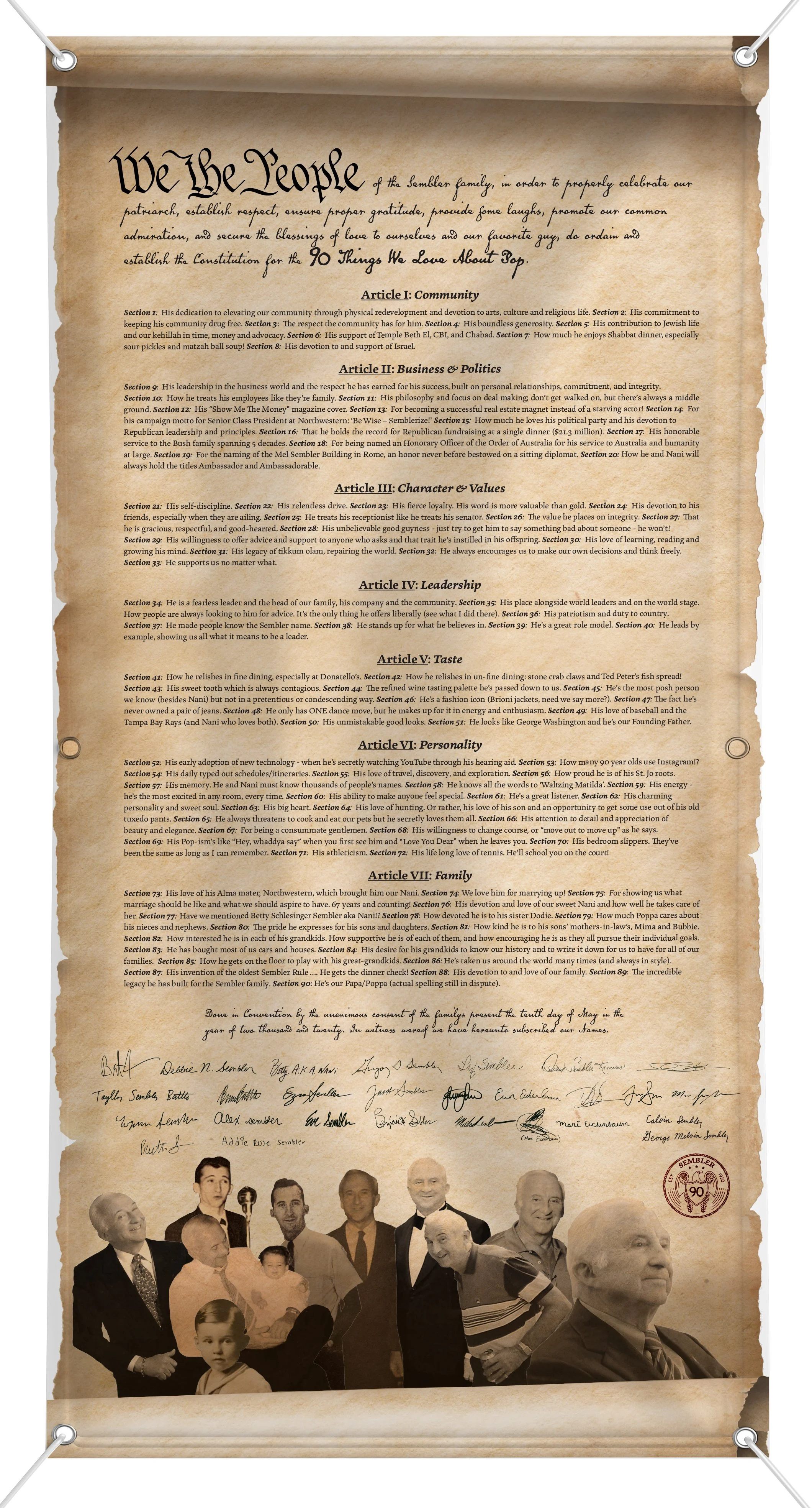To celebrate the 90th birthday of the most patriotic man I know, and to accomodate the 90 things, I styled this one like the Constitution. I rewrote the into copy to be relevant and even grouped the reasons by category as the “Amendments.” I might have snuck a baby picture of myself into this one :)